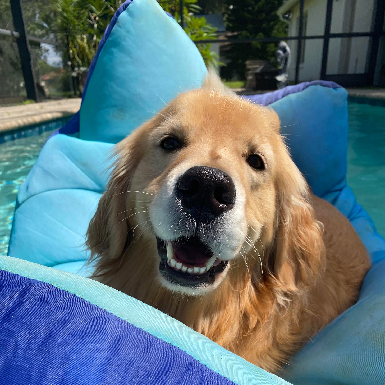💛 Link is 4 years old. She loves to soak up the sun and see how many toys she can fit in her mouth at once! She is a snuggler and enjoys watching TV with her family. She’s always up for a good walk! She’s not a swimmer, but she does love to float in the pool! 💛